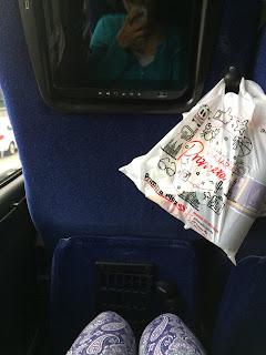 Primera的座位非常大, 而且有個人電影螢幕, 耳機, USB充電座, wifi, 上車前還會拿到一袋食物, 可自選飲料一種(汽水或水), 以及零食或三明治點心